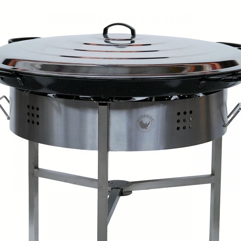 Kit à paella luxe 40 personnes - pare-flammes inox 70cm - plat émaillé 80cm et couvercle inox